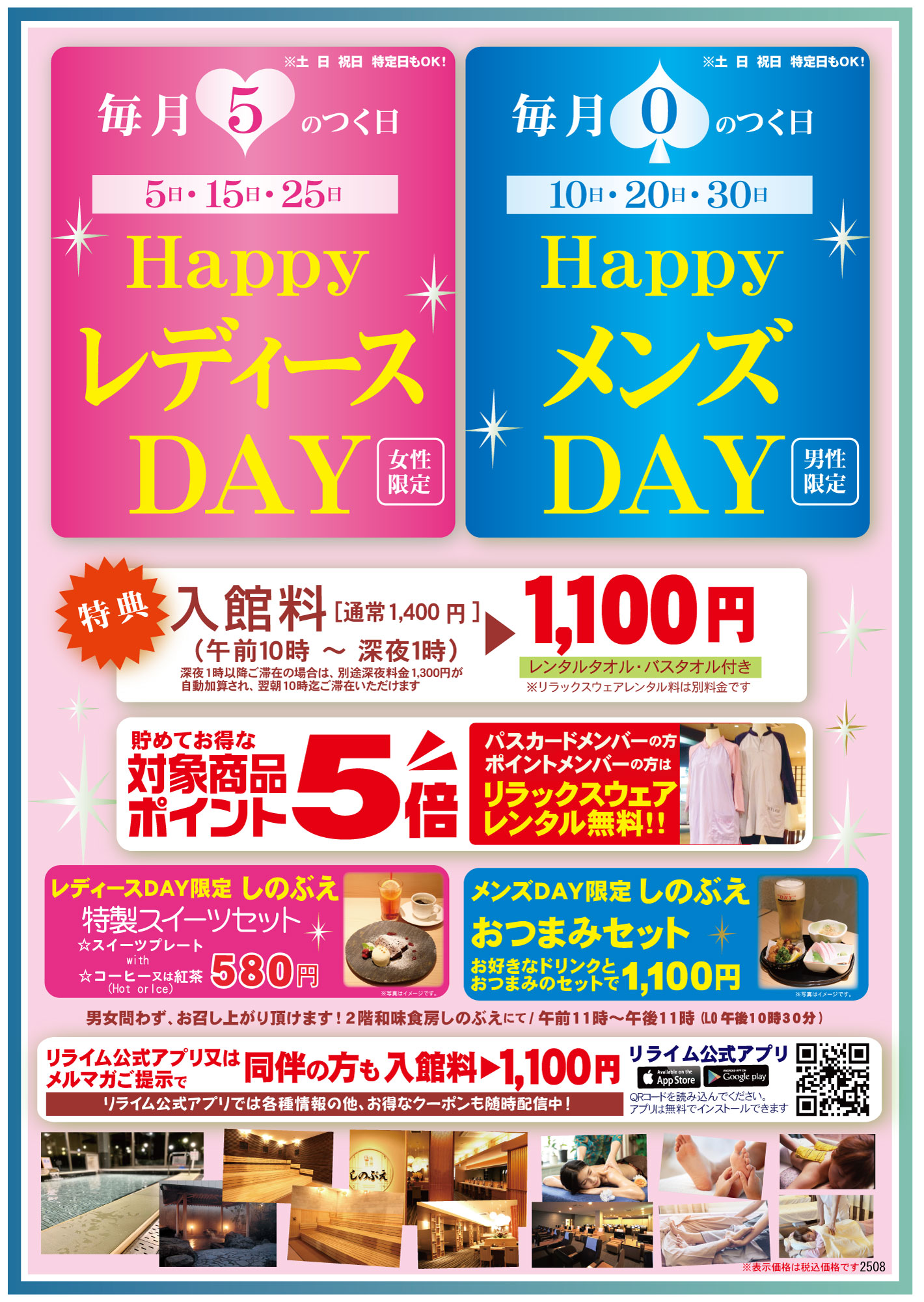 登録日:2025.01.30男性の方は一般入館料1,100円に!メンズDAY!