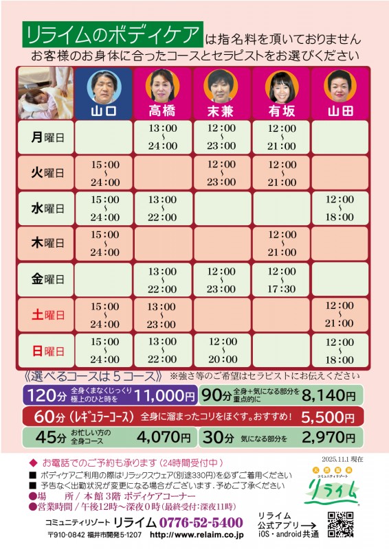 【2025年11月1日~の新担当表】